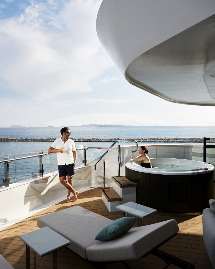 The suites aboard The Ritz-Carlton Yacht Collection are thoughtfully designed to evoke a sense of refined luxury, lightness and seamless connection to the sea. Inspired by elegant private residences, each suite blends warm oak finishes, rich marble details and a calming neutral palette to create a timeless, sophisticated atmosphere. Expansive layouts feature floor-to-ceiling windows and private terraces that extend the living space outdoors — blurring the lines between inside and out, and inviting in panoramic ocean views and fresh air.